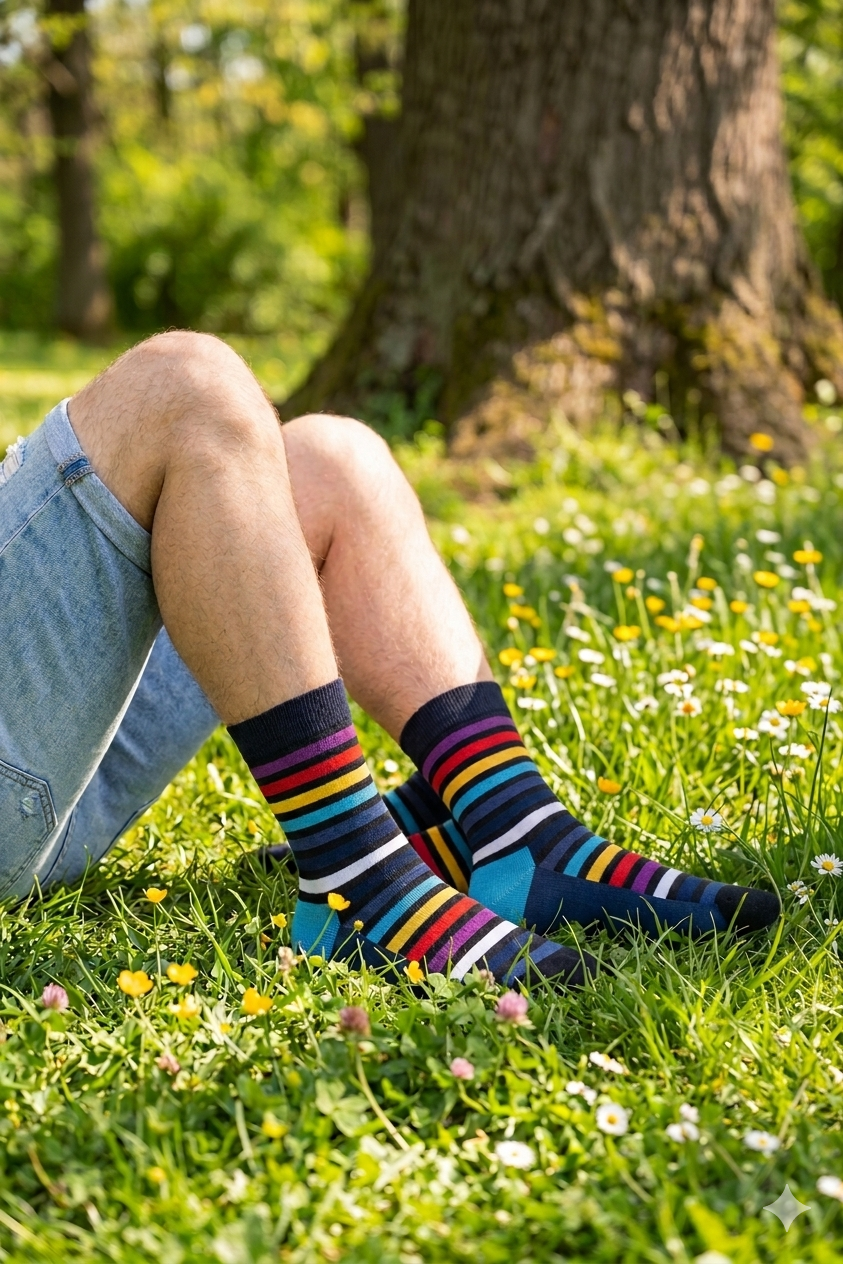 "Great socks! Colors are fantastic! I go to patterns & colors first, then check on fabrics because I’m allergic to wool. Passed the test🤩. HINT: these are sold as men’s socks but they are really unisex - I gave them to both men & women for Valentine’s Day - and giftees want to know where they can buy some for themselves💃🏽💃🏽"