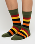 Olive Pine brings the contrast rich green base, vibrant ember tones, and an all-day comfy fit. For those who like their socks with soul and spice.