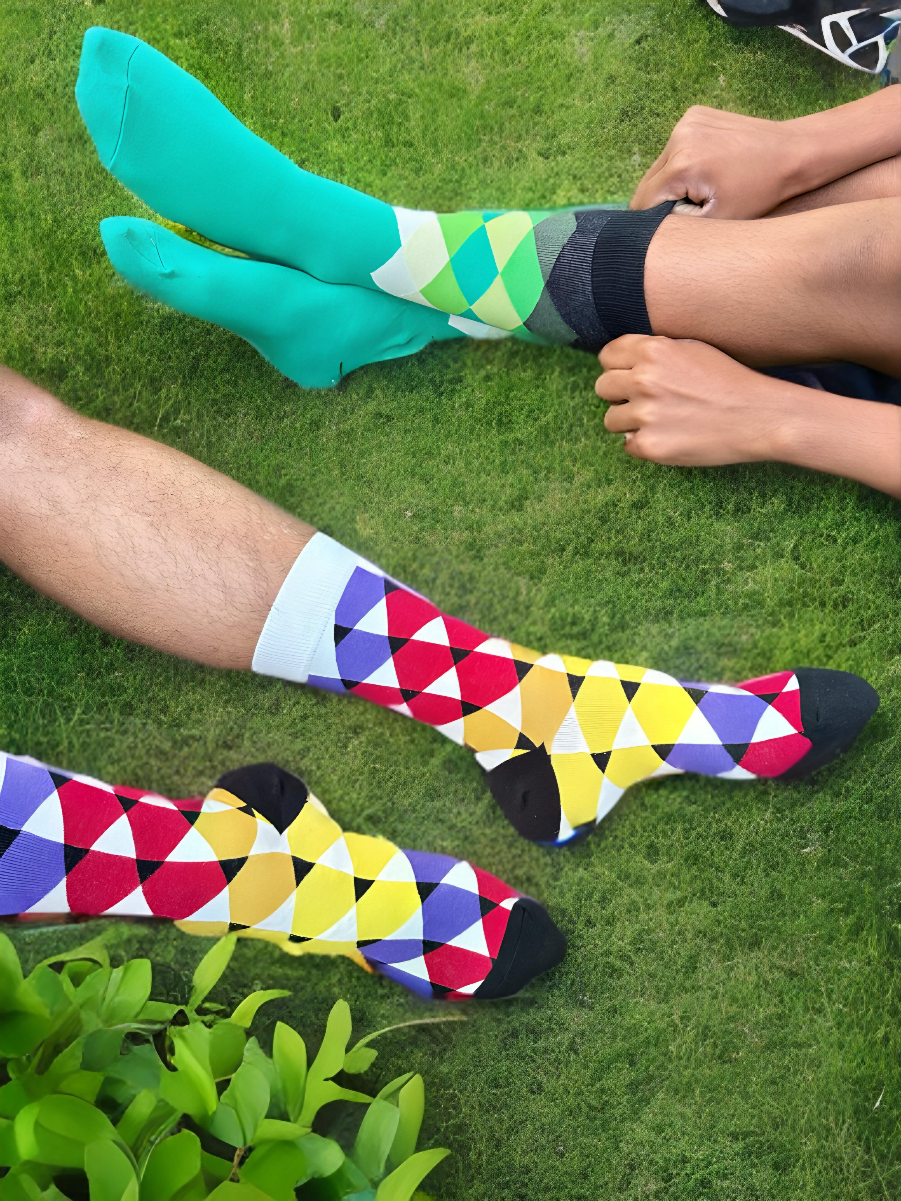 GeoMosaic Collection – premium 5-pack geometric socks in bold, modern colorways